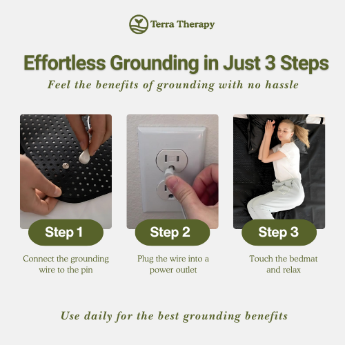 Grounding (or earthing) means connecting your body to the Earth, like walking barefoot on grass. This contact allows free electrons to flow into your body, helping reduce inflammation and restore balance.